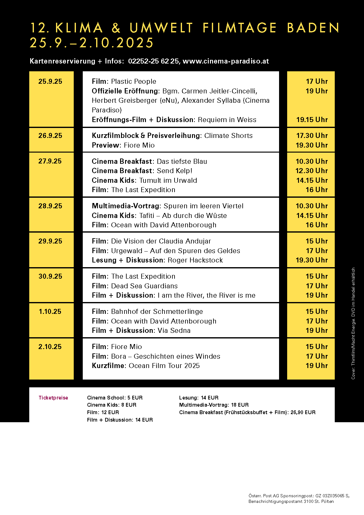 Wir freuen uns auf Ihren Besuch bei den 12. KLIMA & UMWELT Filmtagen in Baden!